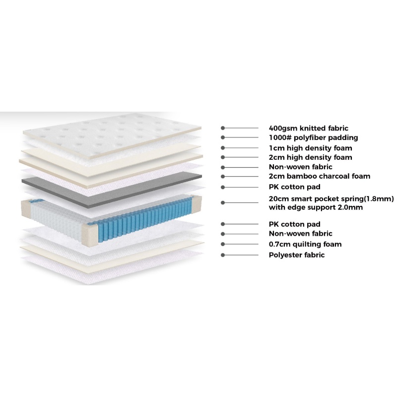 Support Layer: Smart pocket spring(1.8mm) with edge support 2.0mm
